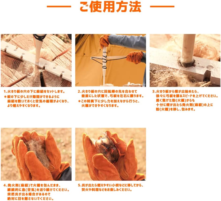 The bow-top fire starter rod makes the fire on its own. You can experience that fun in one set. Whether you're camping or barbecuing with your kids or friends, you will be sure to get a lot of fun. As an introductory to survival experience, it can also be used as a fire challenge, or as an educational experience. It is also recommended to compare with the main figure set (sold separately). When using with children, please be sure to use it with an adult. PACKAGES Handpiece: 1 Fire Plate: 1 Fire starter (hemp string): 1 Product Specifications When Assembled: Approx. W 15.7 x H 15.4 inches (40 x Weight: 7.8 oz (220 g). Due to the nature of the production and material, there may be scuffs or scratches on the surface of the main unit. There may be scuffs or scratches that occur during shipping. Depending on the production lot, the color of the package may be thin, but it is not sunburn or deterioration over time. Please be assured of this product. Please carefully read the precautions printed on the product images and packaging. Depending on your monitor settings, the color may appear different.