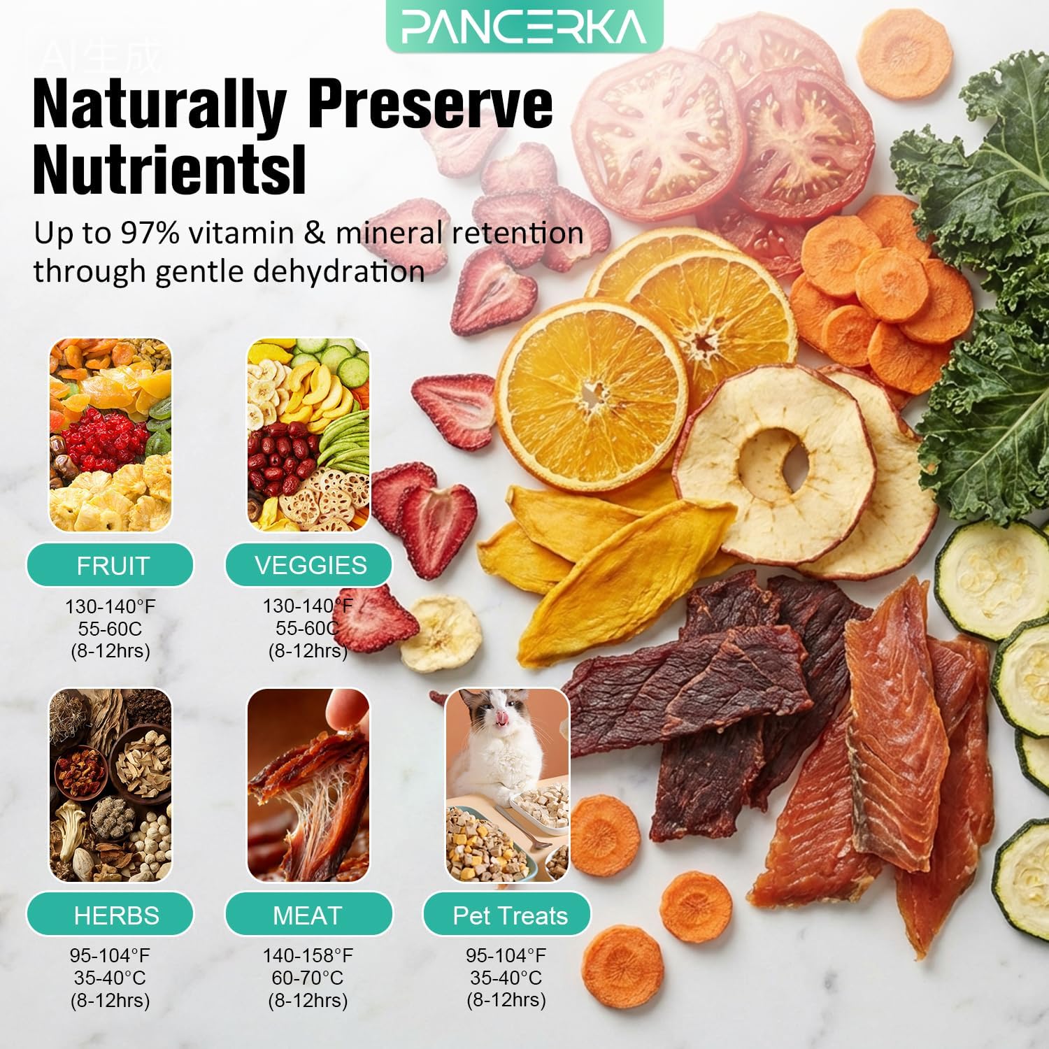 PANCERKA Food Dehydrator Small Machine, 5-Tray with Adjustable Timer and Temp Control for Fruit, Jerky, Pet Snacks, Herbs